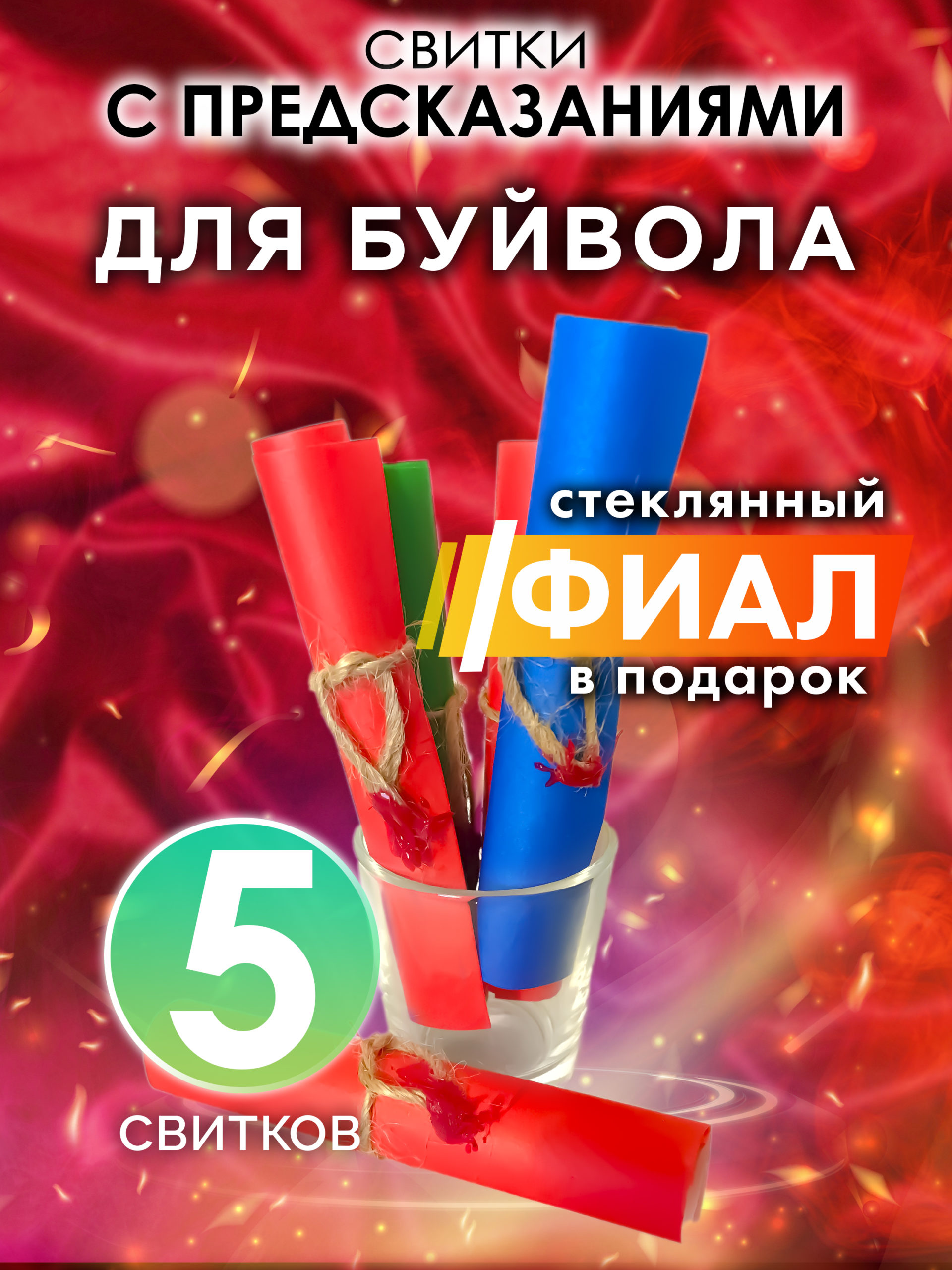Комплектация: 5 свитков с предсказаниями в стеклянном фиале.