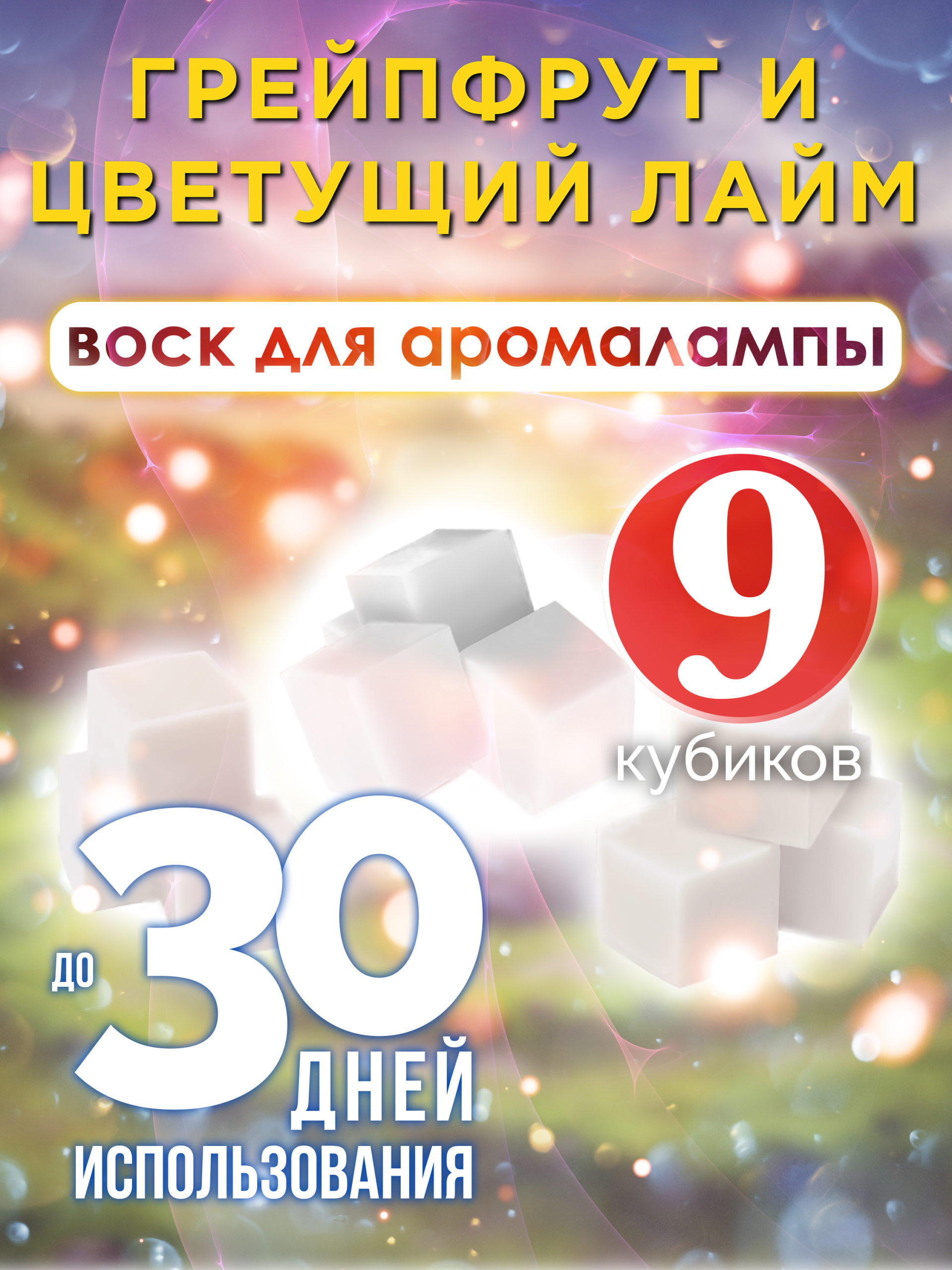 Набор содержит 9 кубиков, каждый из которых наполнен ароматом «Грейпфрут и цветущий лайм».