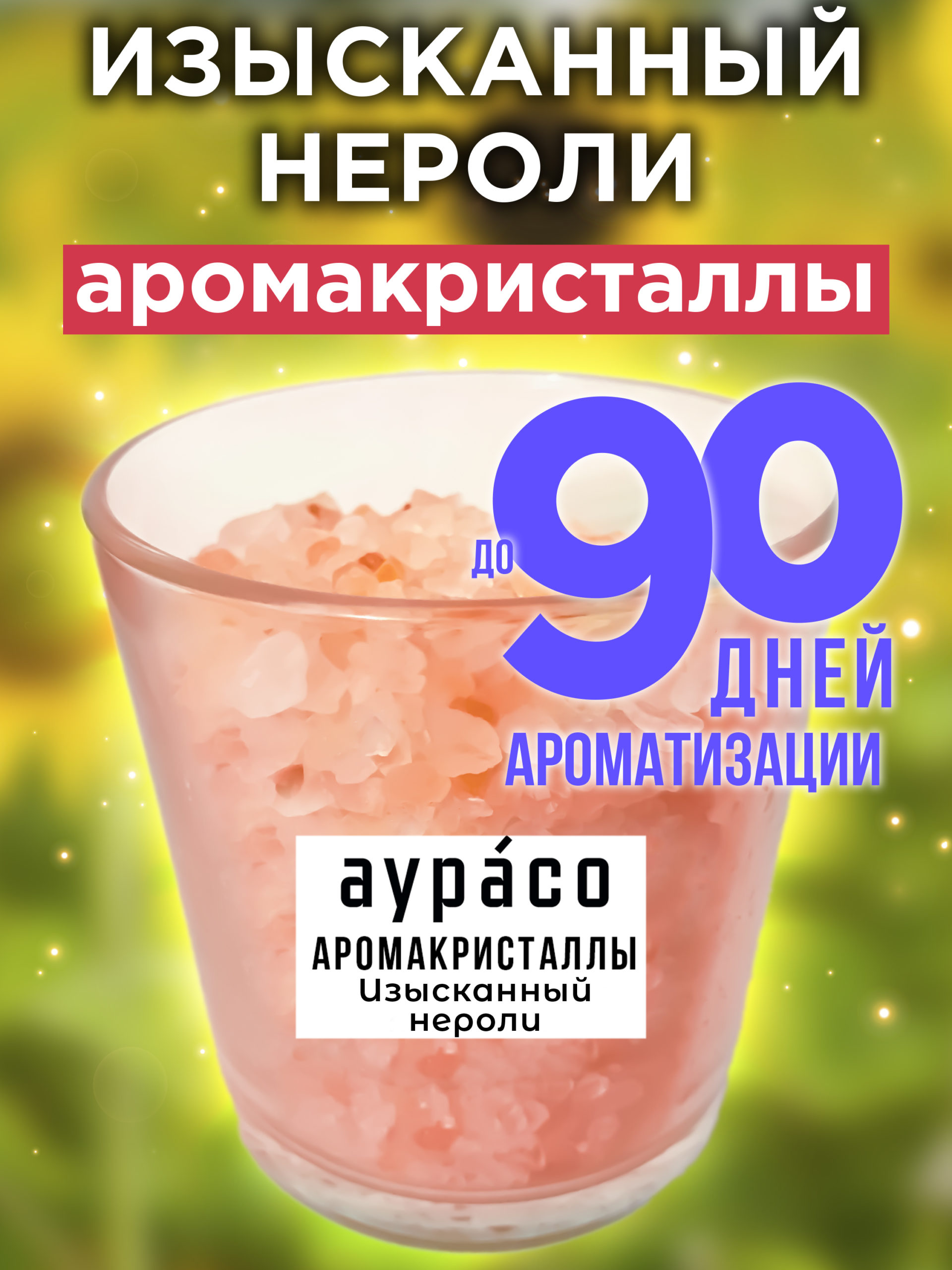 Аромакристаллы Аурасо ‘Изысканный нероли’ — это натуральный ароматический диффузор в стеклянном стакане, обладающий уникальной ароматической композицией.