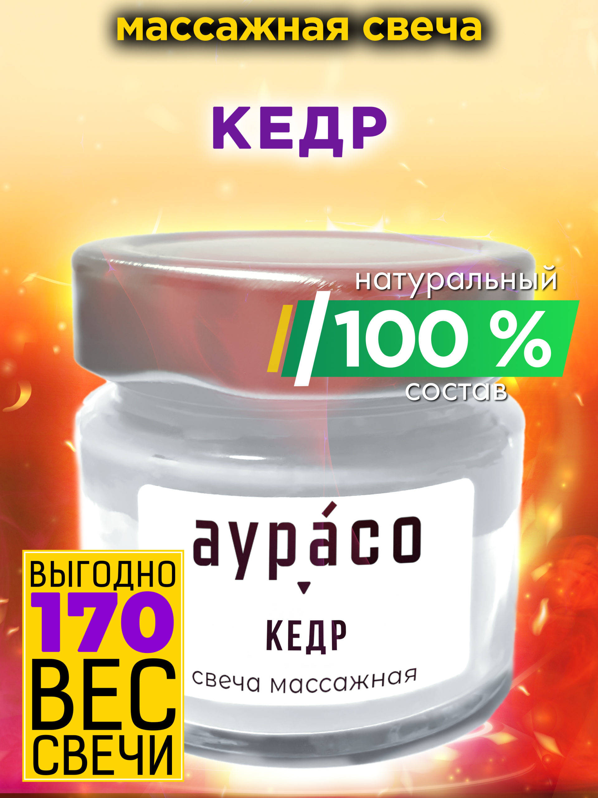 Массажная крем-свеча Аурасо из натуральных компонентов «Кедр».