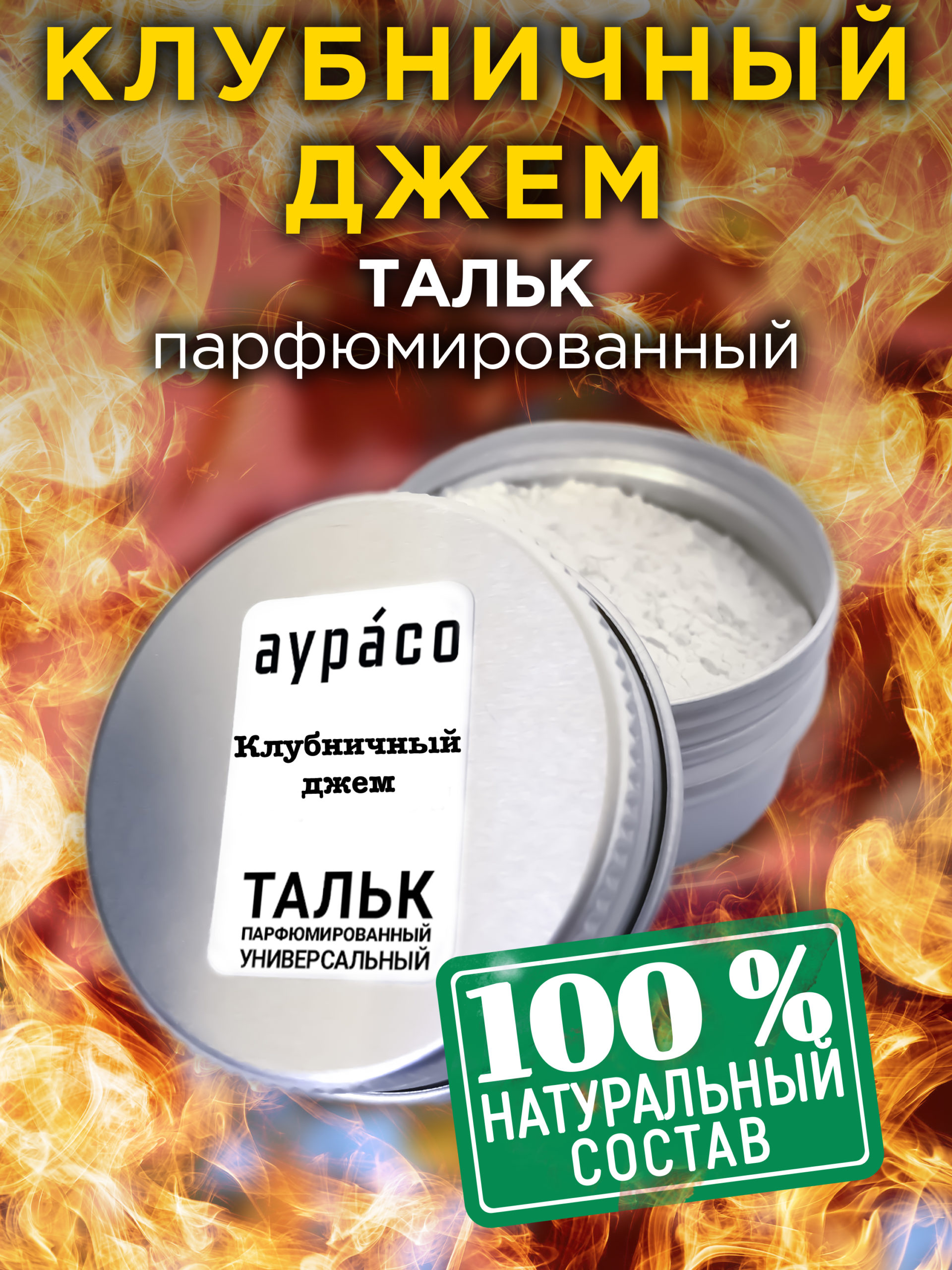 Натуральный ароматизированный тальк Аурасо для тела и ног с ароматом ‘Клубничный джем’ обладает уникальной ароматической композицией, подходящей как для мужчин, так и для женщин.
