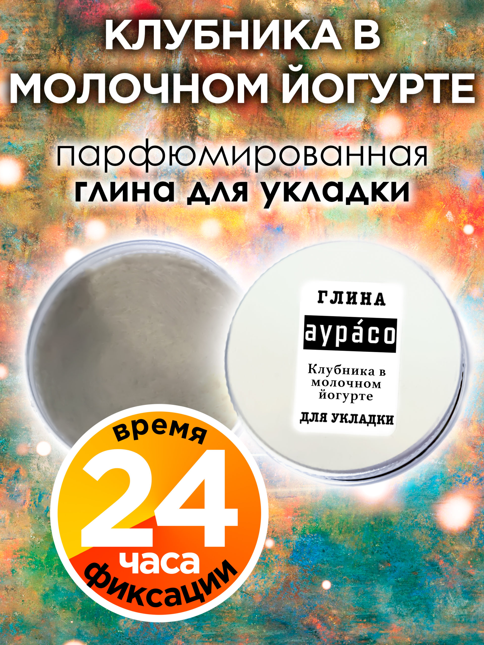 Парфюмированная глина Аурасо для укладки волос сильной фиксации с ароматом ‘Клубника в молочном йогурте’ обеспечивает сильную, при этом пластичную фиксацию и матовый финиш. Созданная укладка выглядит естественно и держится весь день.