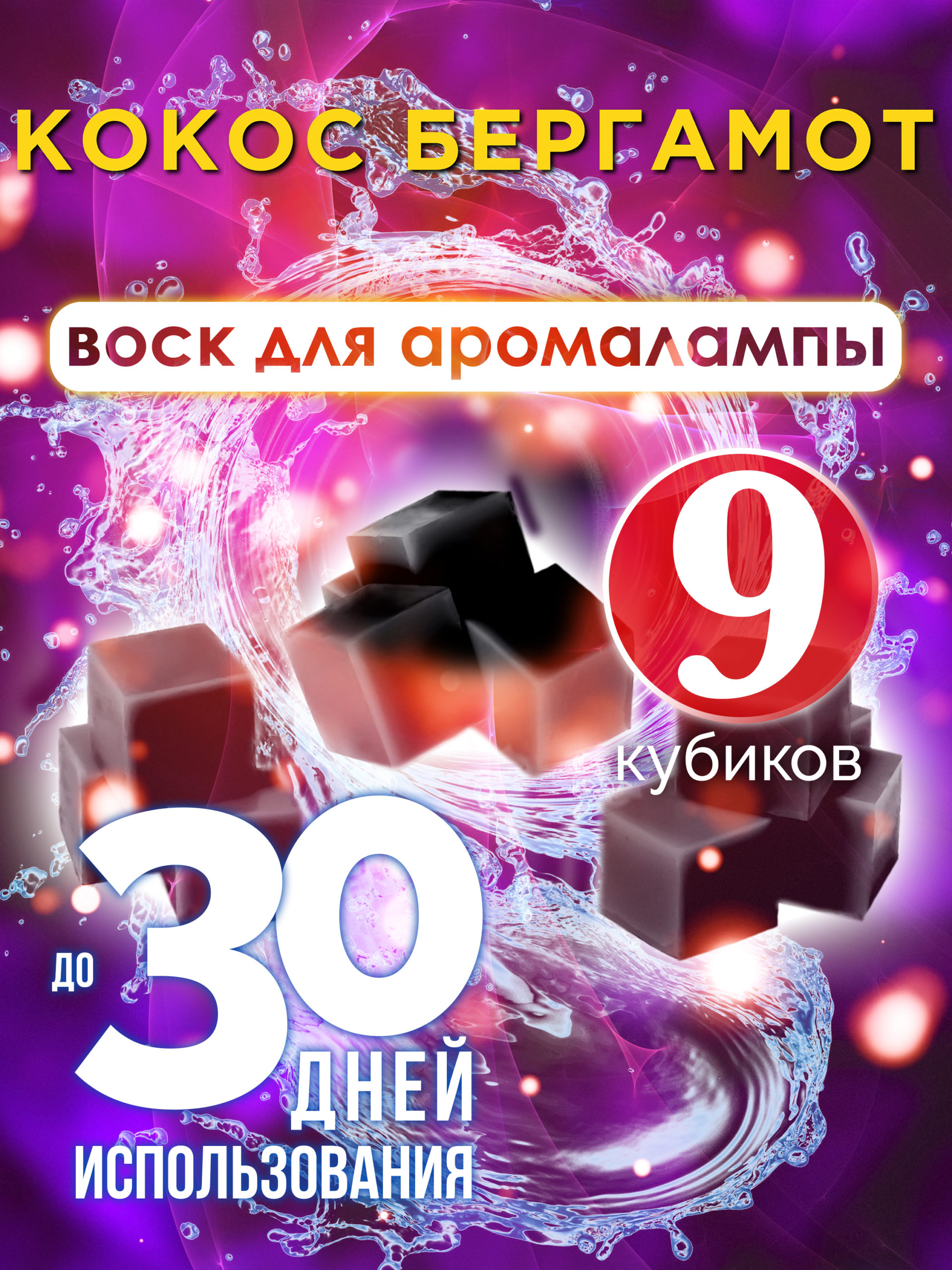 Набор содержит 9 кубиков, каждый из которых наполнен ароматом «Кокос бергамот».