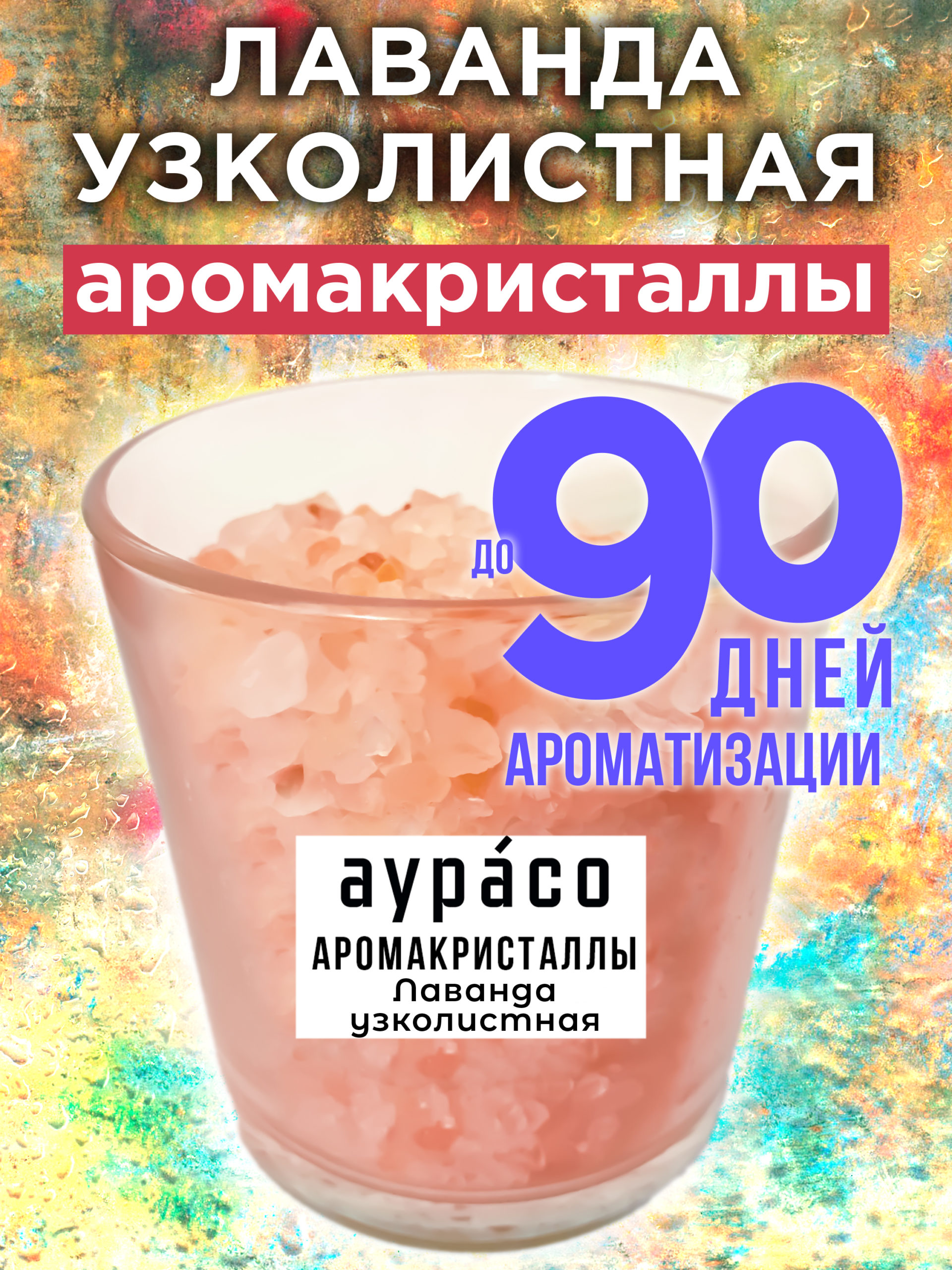 Аромакристаллы Аурасо ‘Лаванда узколистная’ — это натуральный ароматический диффузор в стеклянном стакане, обладающий уникальной ароматической композицией.