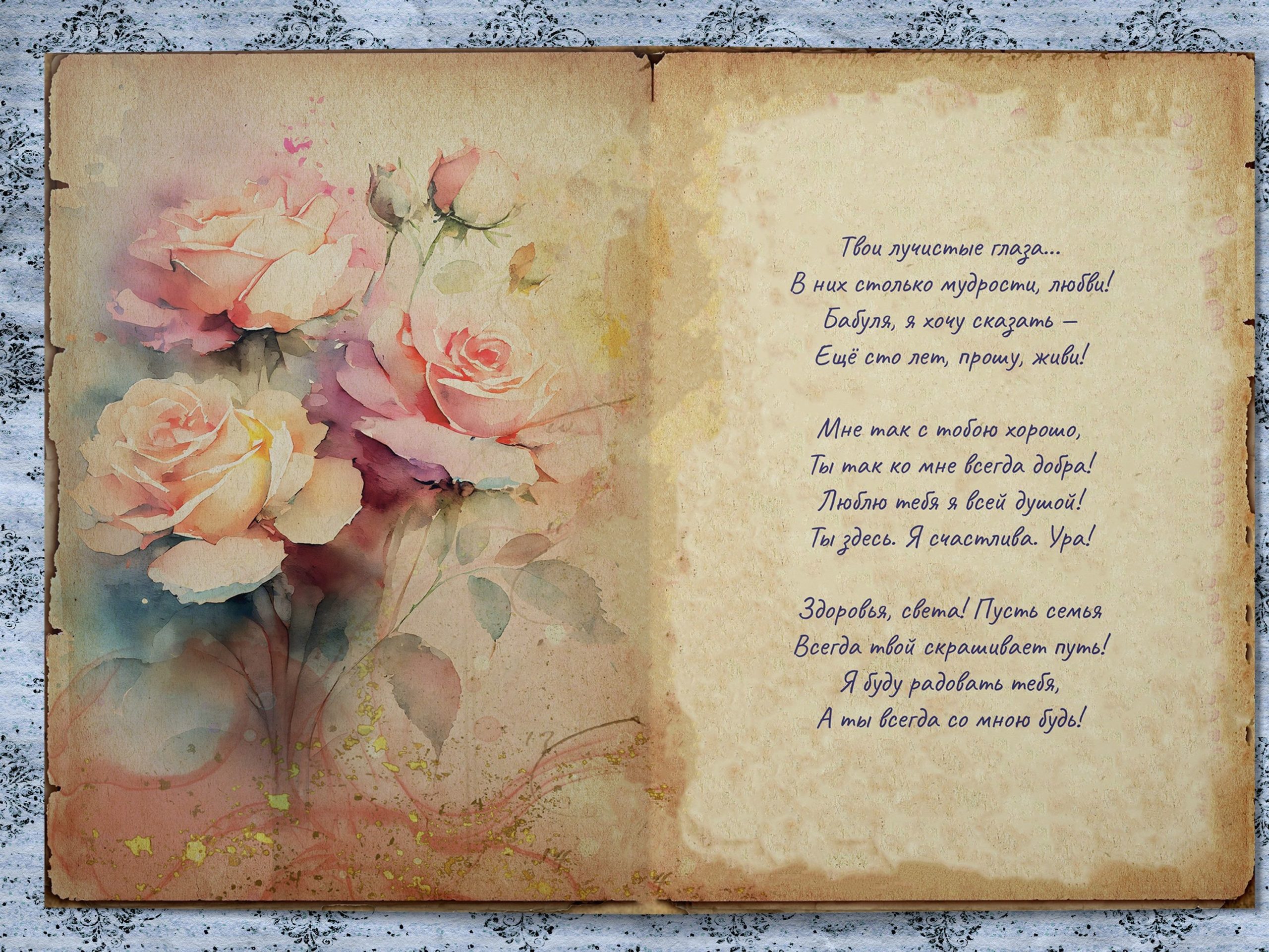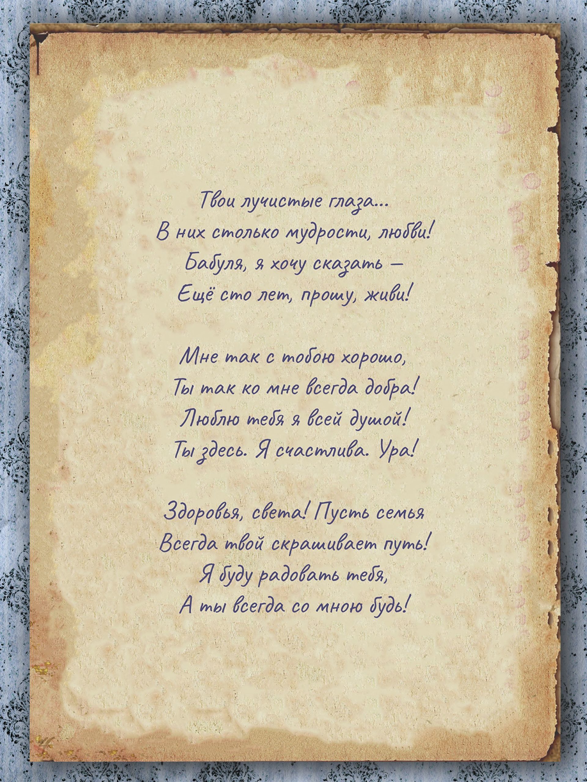 «Любимой бабушке» — открытка со стихами поэтессы Анастасии Рыбачук, большая, с разворотом, 14,8 x 21 см