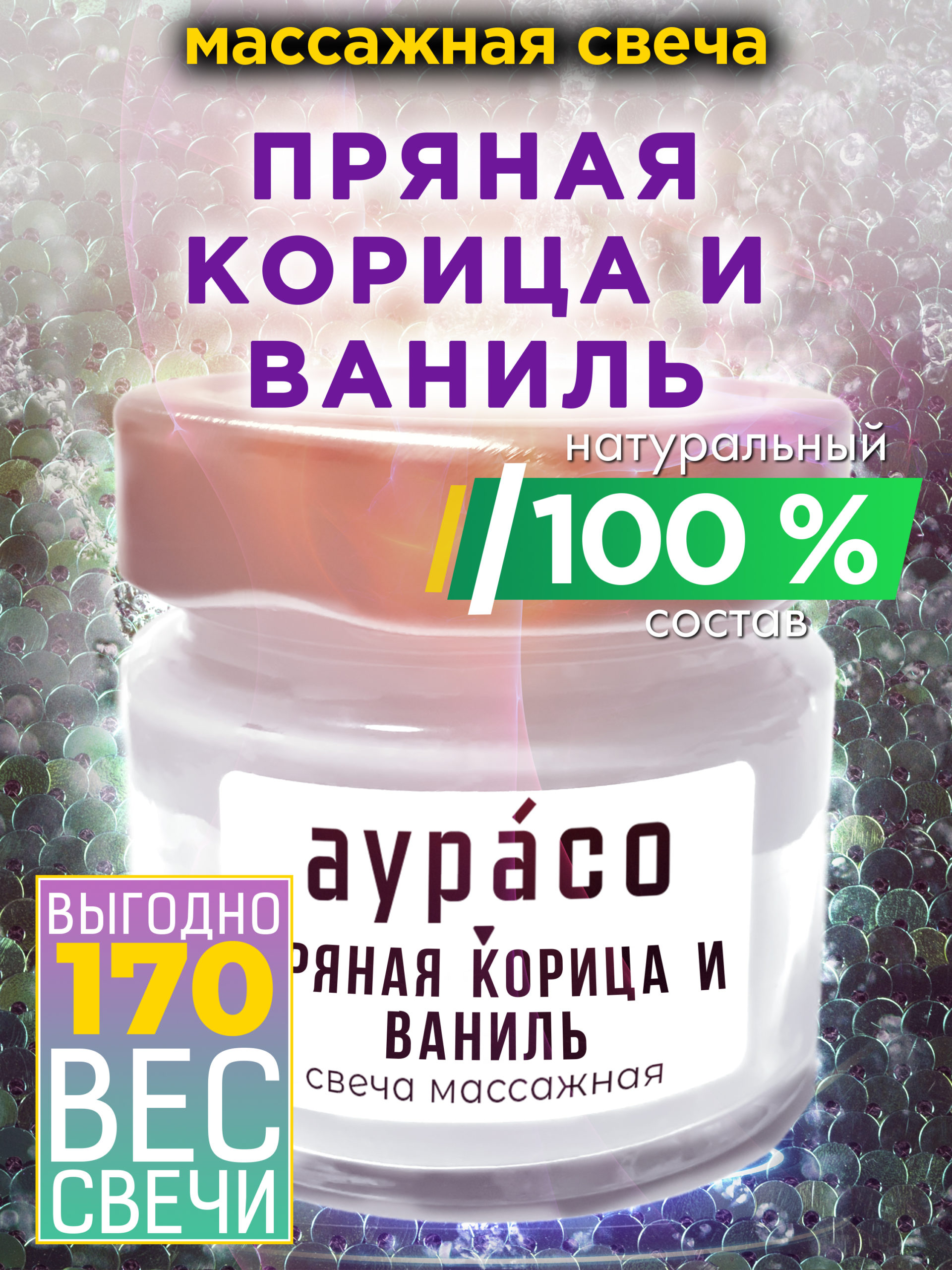 Массажная крем-свеча Аурасо из натуральных компонентов «Пряная корица и ваниль».