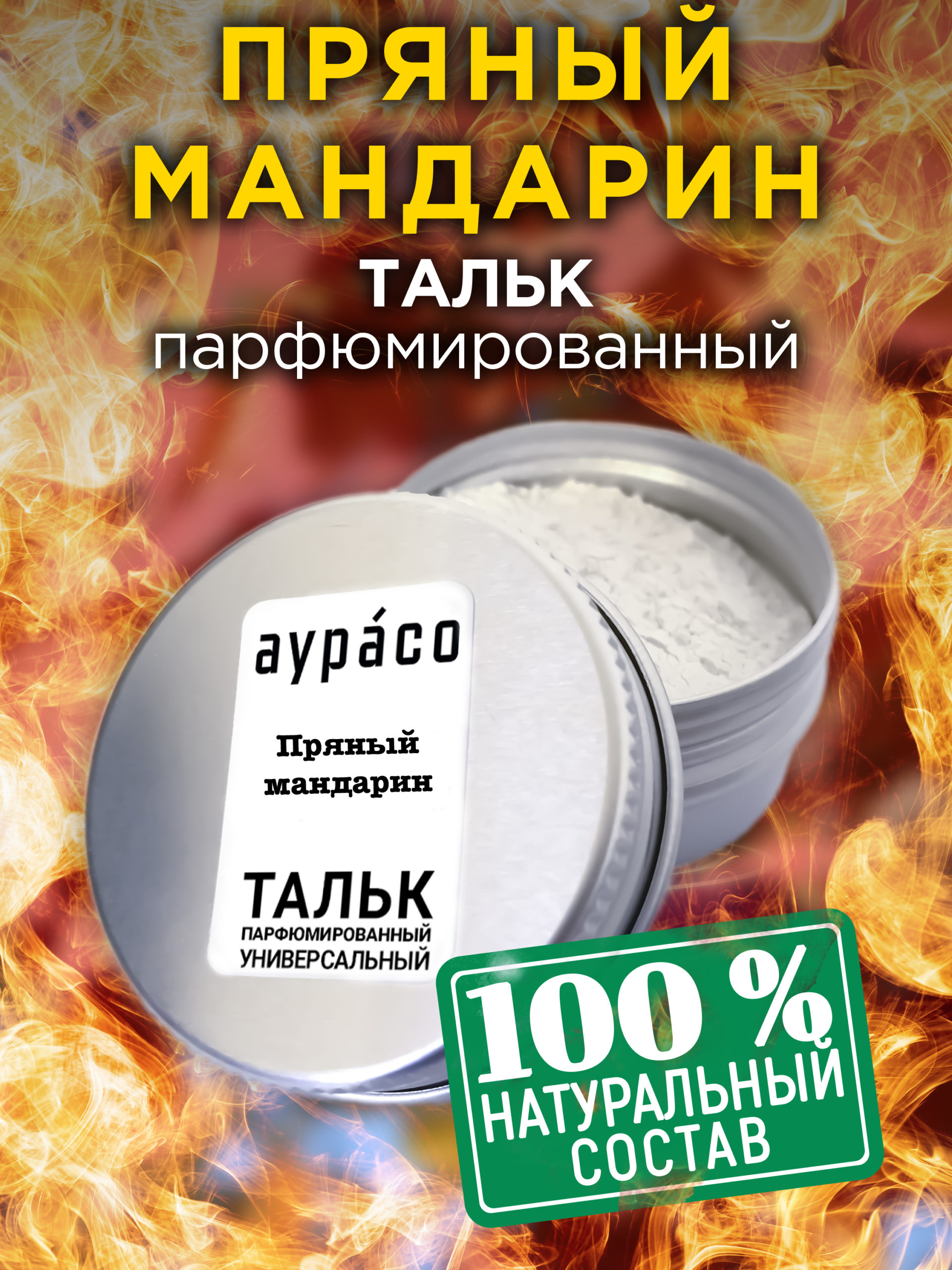 Натуральный ароматизированный тальк Аурасо для тела и ног с ароматом ‘Пряный мандарин’ обладает уникальной ароматической композицией, подходящей как для мужчин, так и для женщин.