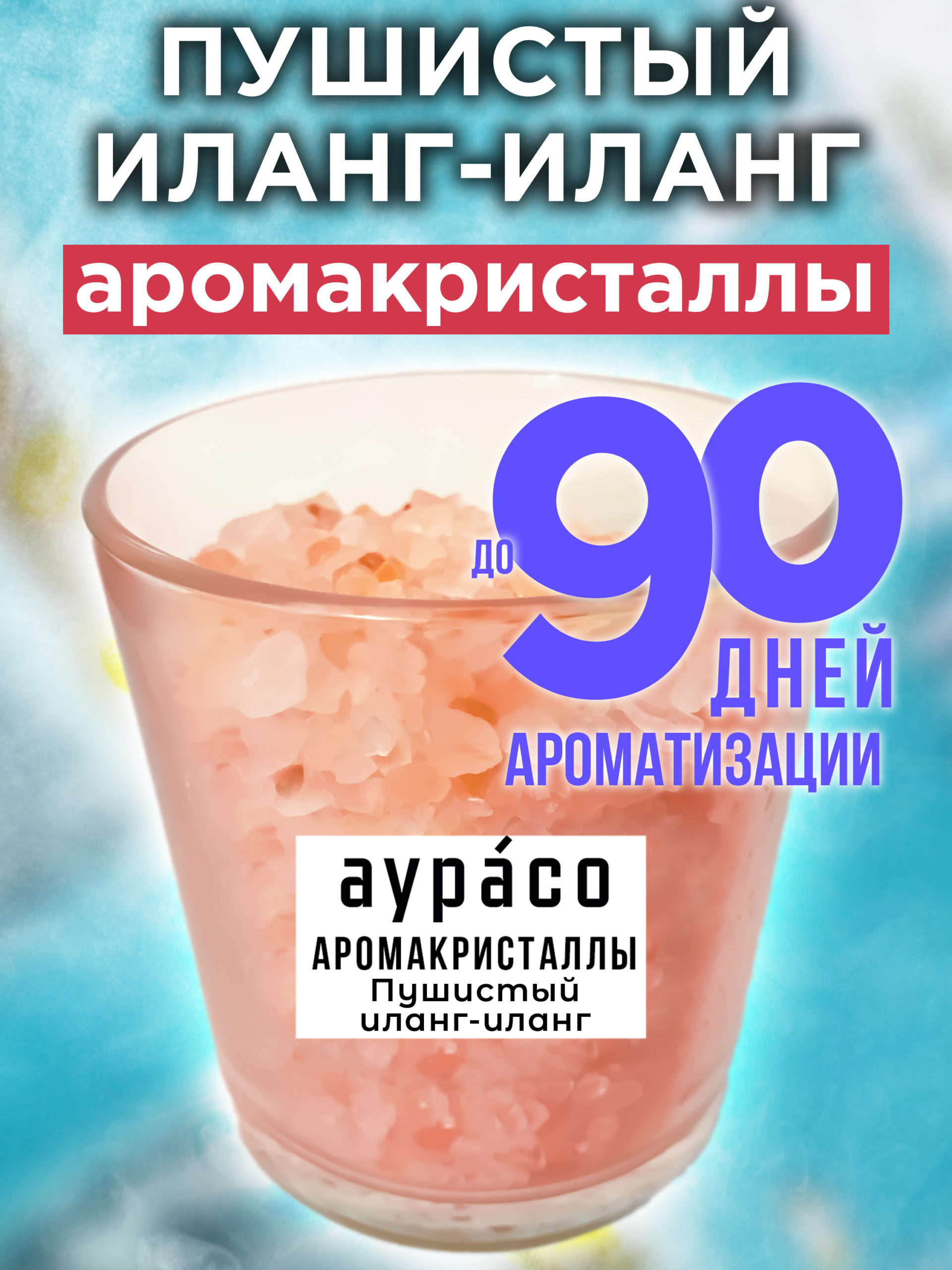Аромакристаллы Аурасо ‘Пушистый иланг-иланг’ — это натуральный ароматический диффузор в стеклянном стакане, обладающий уникальной ароматической композицией.