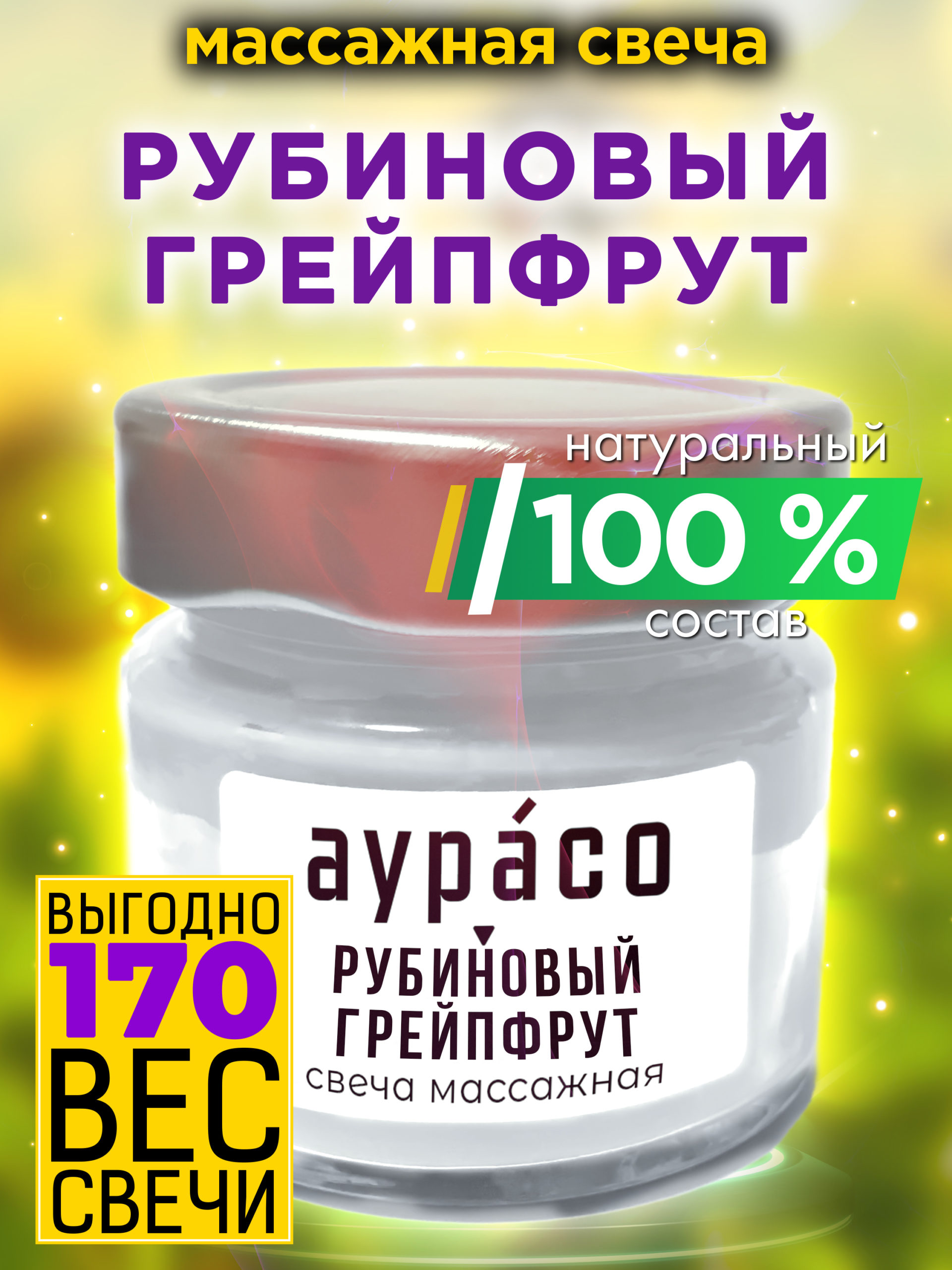 Массажная крем-свеча Аурасо из натуральных компонентов «Рубиновый грейпфрут».