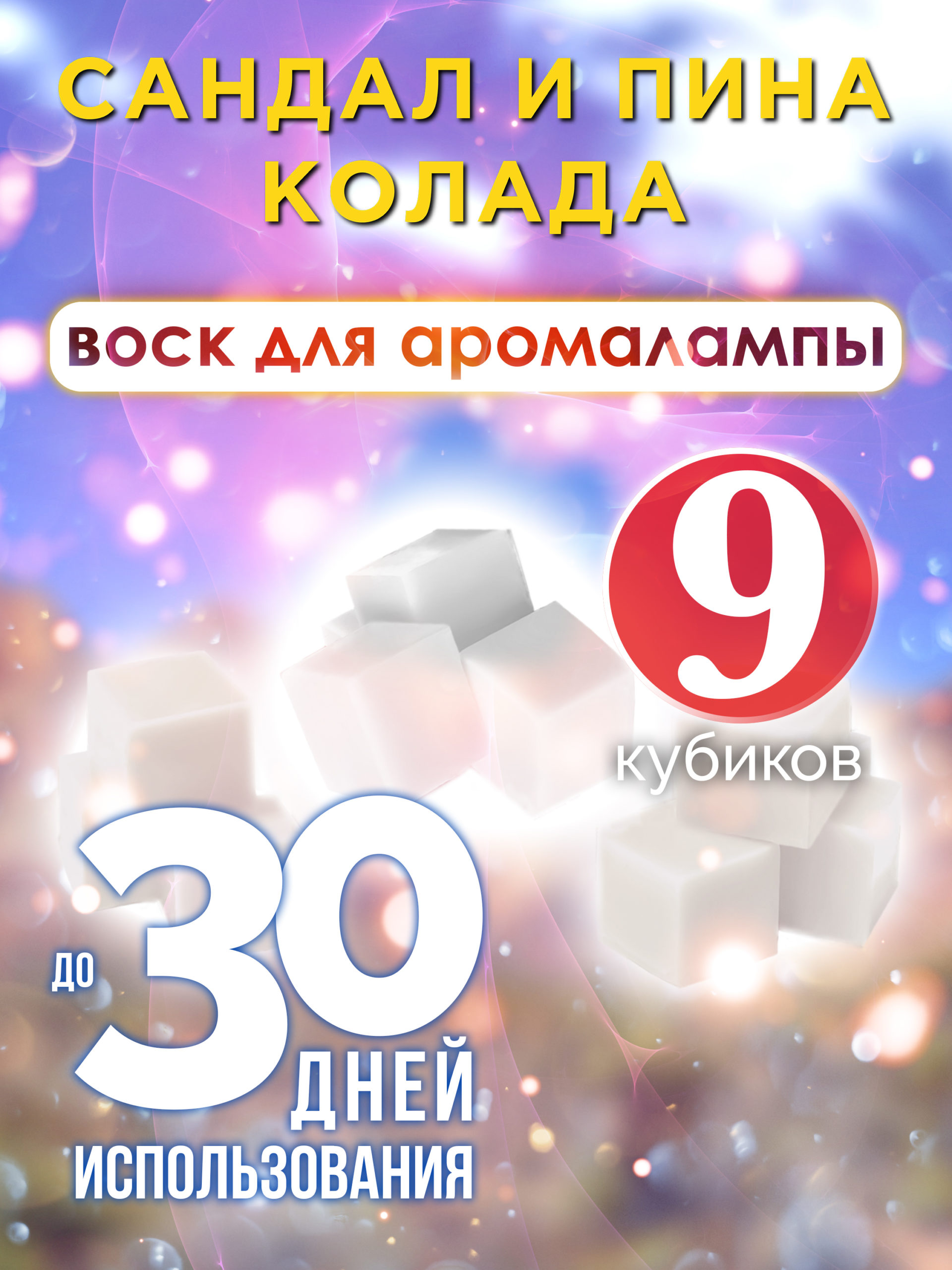 Набор содержит 9 кубиков, каждый из которых наполнен ароматом «Сандал и пина колада».