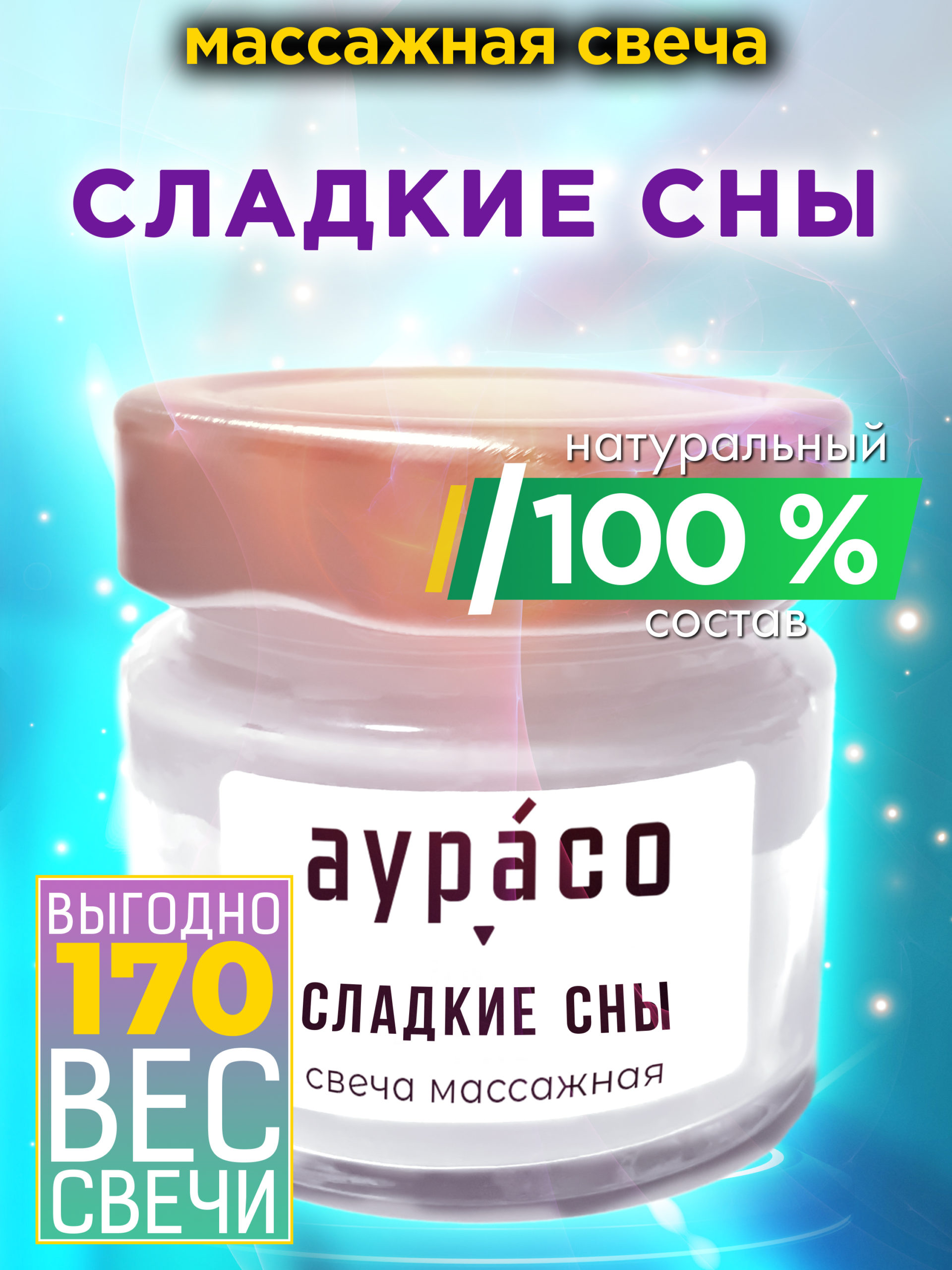 Массажная крем-свеча Аурасо из натуральных компонентов «Сладкие сны».