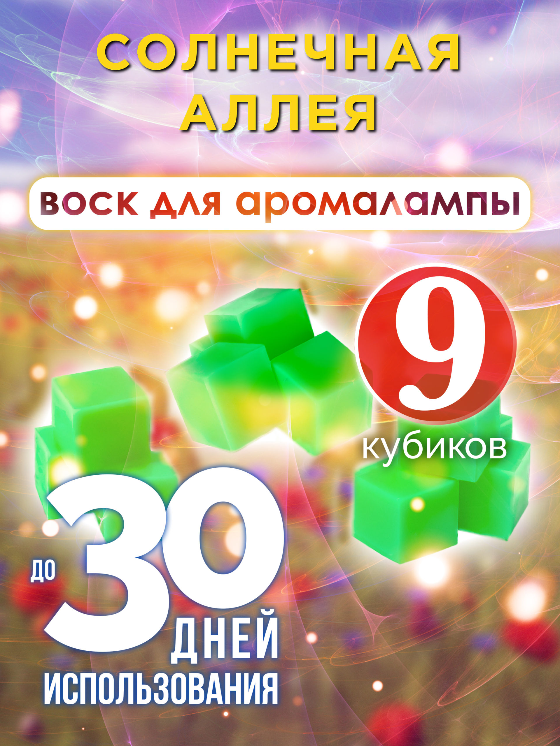 Набор содержит 9 кубиков, каждый из которых наполнен ароматом «Солнечная аллея».