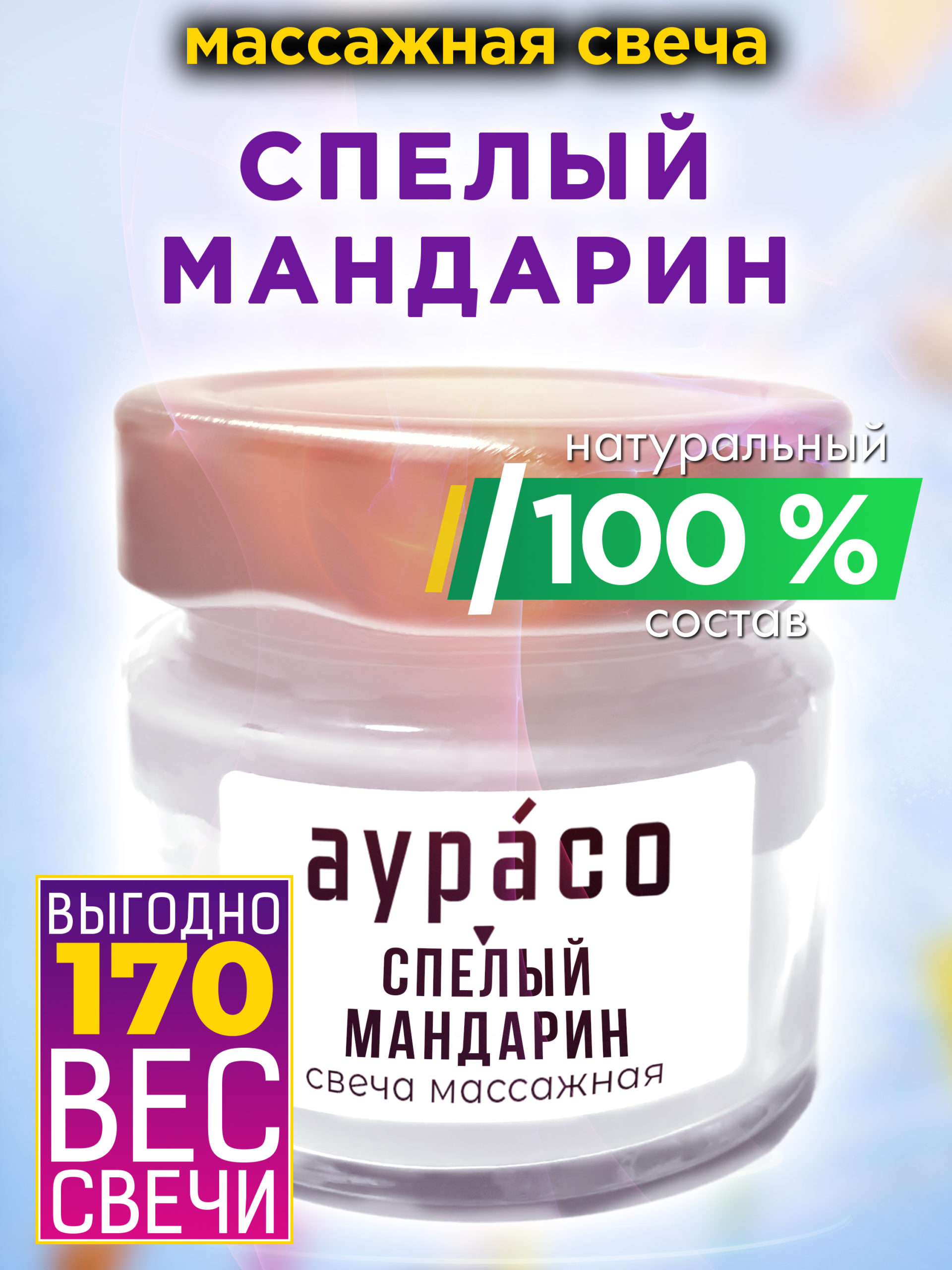 Компоненты в составе массажного масла Аурасо «Спелый мандарин» — это сбалансированный бальзам, который под воздействием огня превращается в тёплое масло. Свеча не содержит красителей.