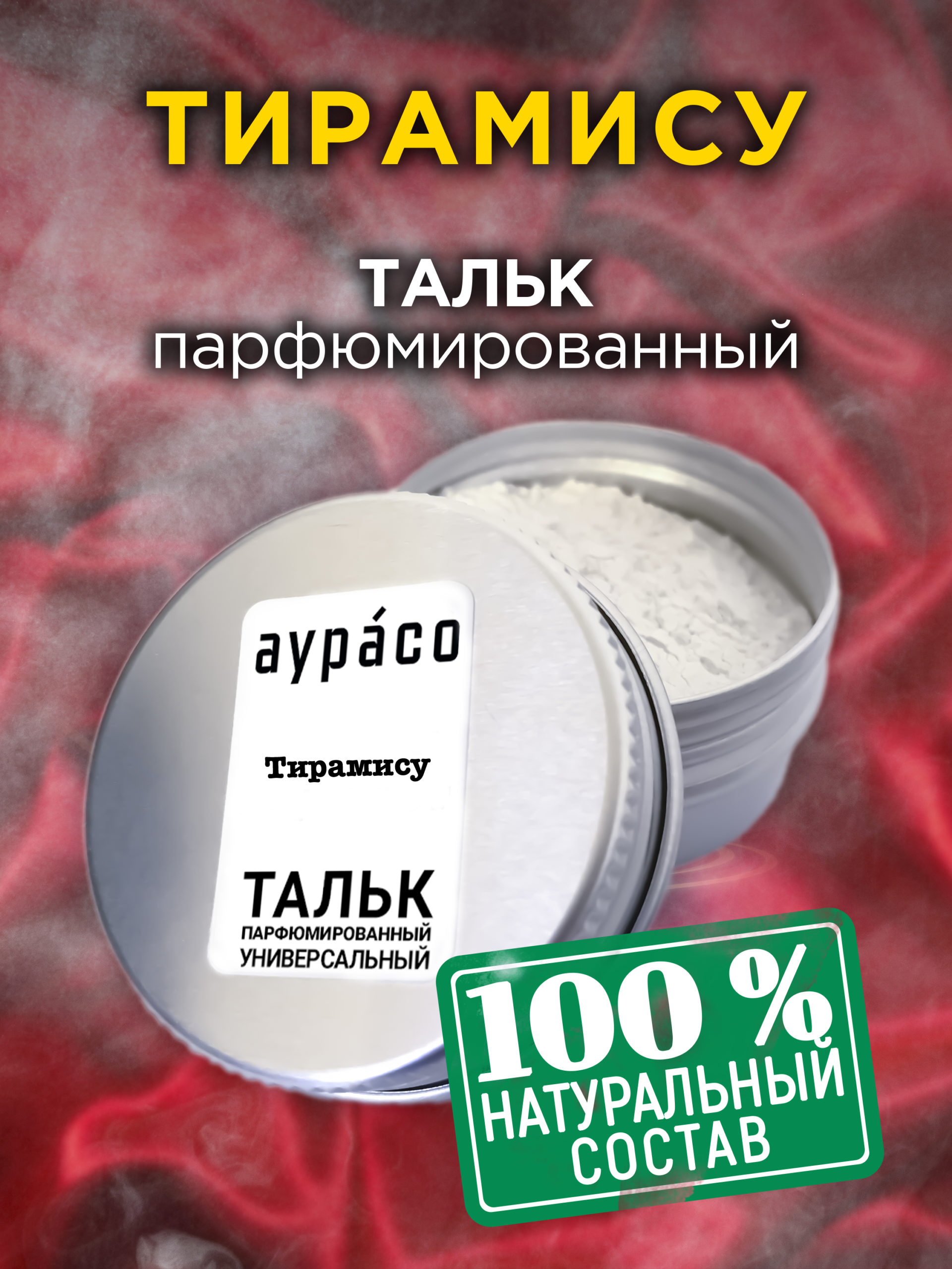 Натуральный ароматизированный тальк Аурасо для тела и ног с ароматом ‘Тирамису’ обладает уникальной ароматической композицией, подходящей как для мужчин, так и для женщин.