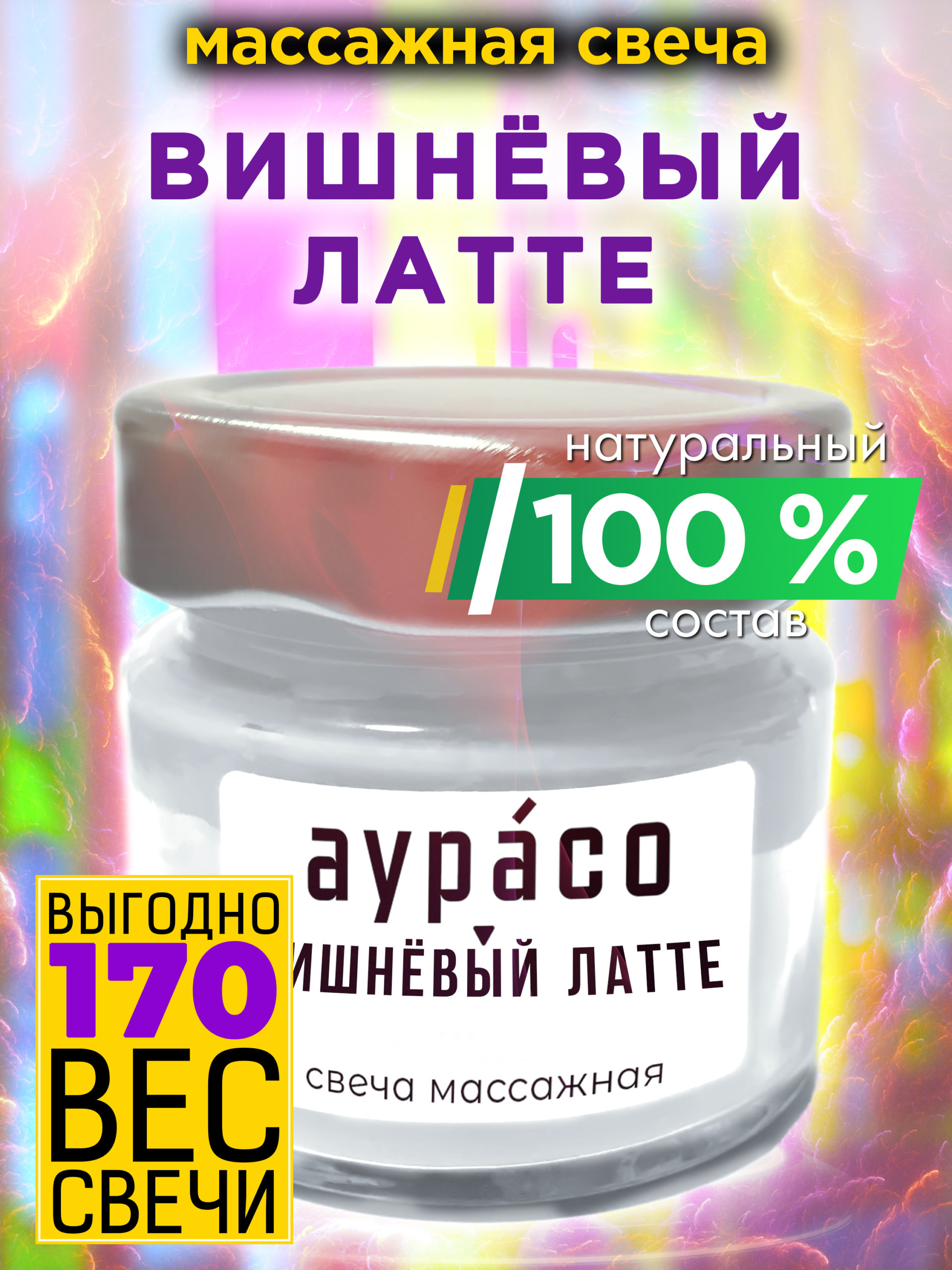 Массажная крем-свеча Аурасо из натуральных компонентов «Вишнёвый латте».