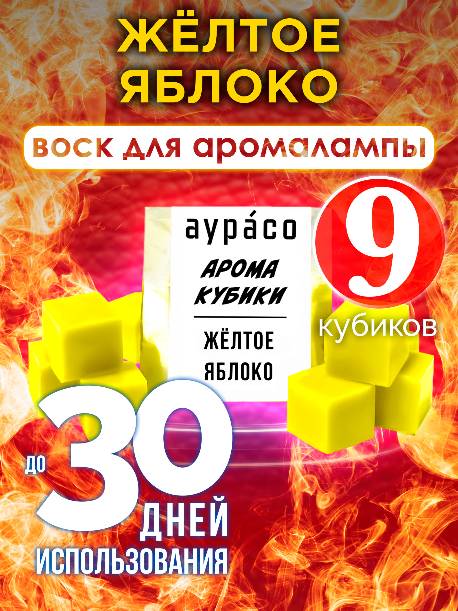 Одна упаковка кубиков Аурасо «Жёлтое яблоко» рассчитана на месяц ароматизации помещения до 20 кв. метров.